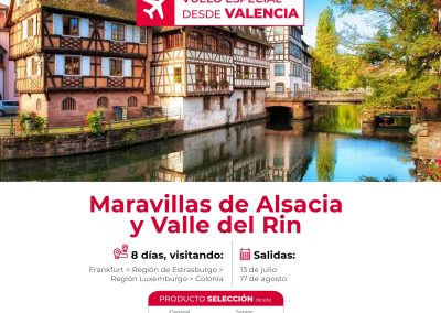 Destinos europeos desde Valencia Destinos europeos desde Valencia Reserva ahora y consigue las mejores ofertas para verano de 2025 en destinos europeos con operativas de vuelo directo desde Valencia. Consúltanos acerca de cualquier programa para conocer detalles.